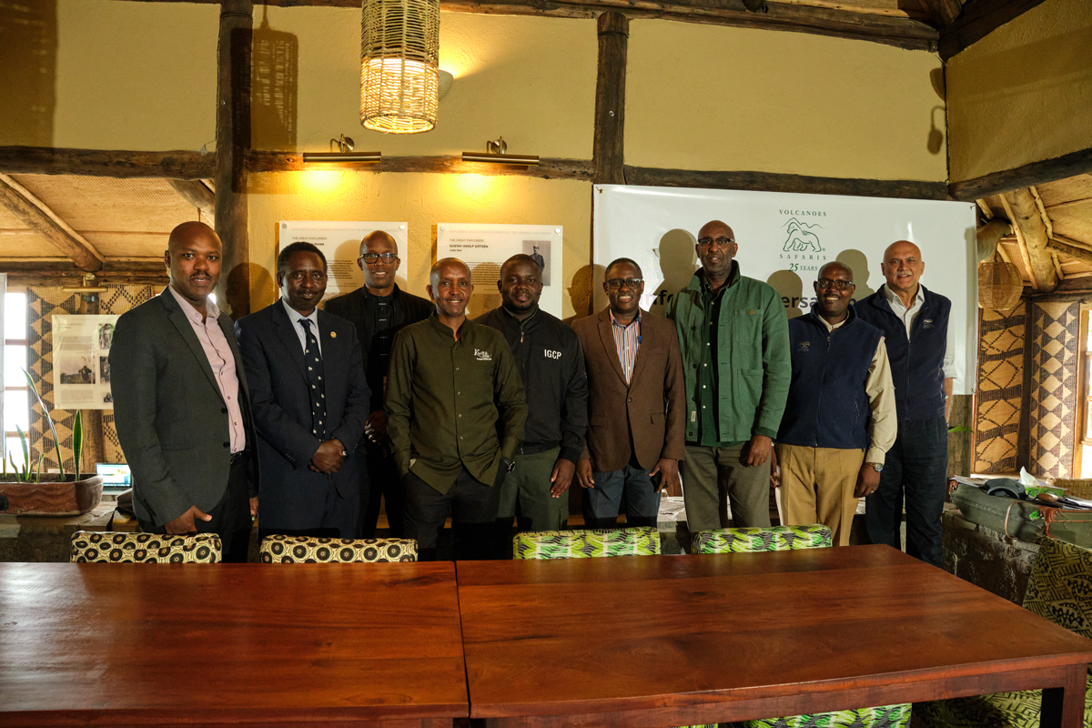 Dian Fossey Gorilla Fund Julius Nziza Rwanda, Head Veterinarian of Gorilla Doctors Rwanda; Jean Paul Hirwa, Deputy Director of International Gorilla Conservation Programme; Manzi Kayihura, Executive Chairman of Wilderness Rwanda; Fidel Ruzigandekwe, Deputy Executive Secretary of Greater Virunga Transboundary Collaboration; James Byamukama, Executive Director of Jane Goodall Institute Uganda.